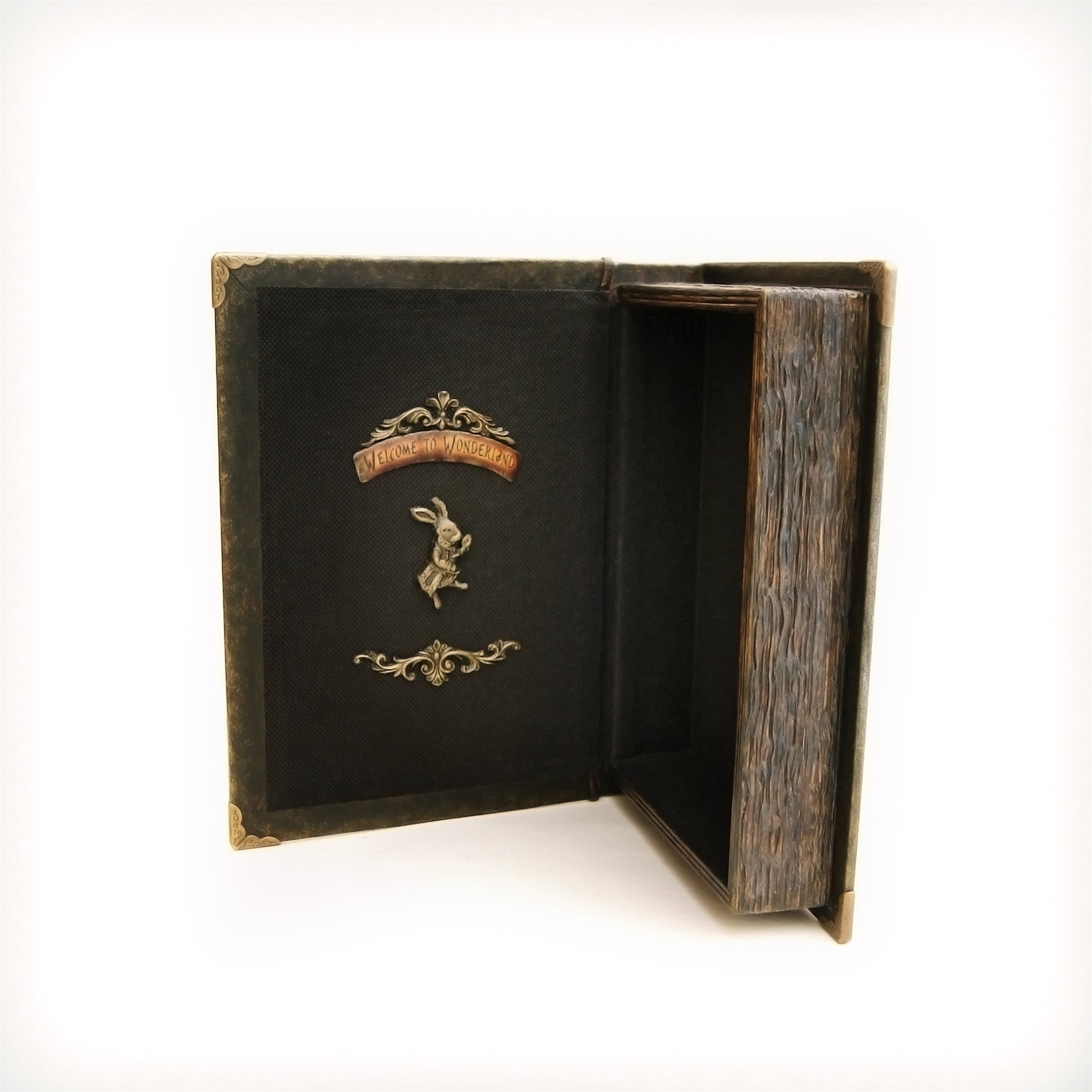 Step into a whimsical world with handmade Alice in Wonderland Box Book, crafted in Victorian style. This extraordinary piece features decoupage adorned with volumetric elements made from high-quality materials, bringing the enchanting tale to life. Perfect for collectors or as a unique gift, this box not only serves as a charming decorative item but also offers storage for your treasures. Embrace the magic of Wonderland in your home!